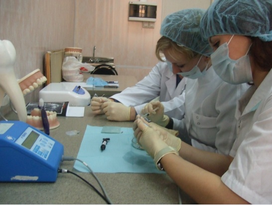 со студентами 2, 3, 4, 5 курсов стоматологического факультета подготовку врачей- стоматологов на базе высшего медицинского образования; Готовят гигиенистов профилактических на базе медико-фармацевтического колледжа.