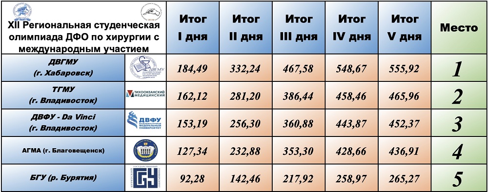 Cостоялось закрытие III Дальневосточной (XII региональной) студенческой олимпиады по хирургии