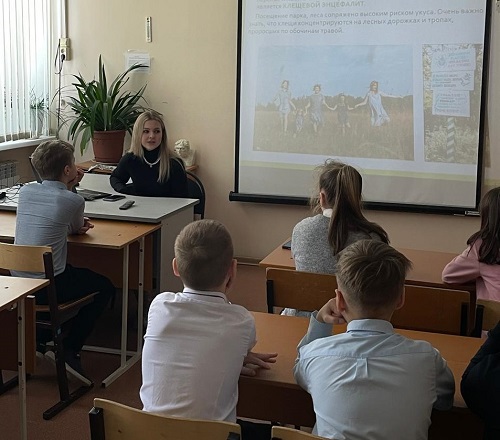 17 марта в МАУ ДО «Детский эколого - биологический центр» доцент кафедры Вялова Надежда Викторовна совместно с ординаторами: Земцовой Дарьей Николаевной и Осмолович Марией Сергеевной провели тематическое занятие «Клещевой энцефалит. Методы профилактики» среди обучающихся МБОУ Правовой лицей им. Сергея Николенко.
