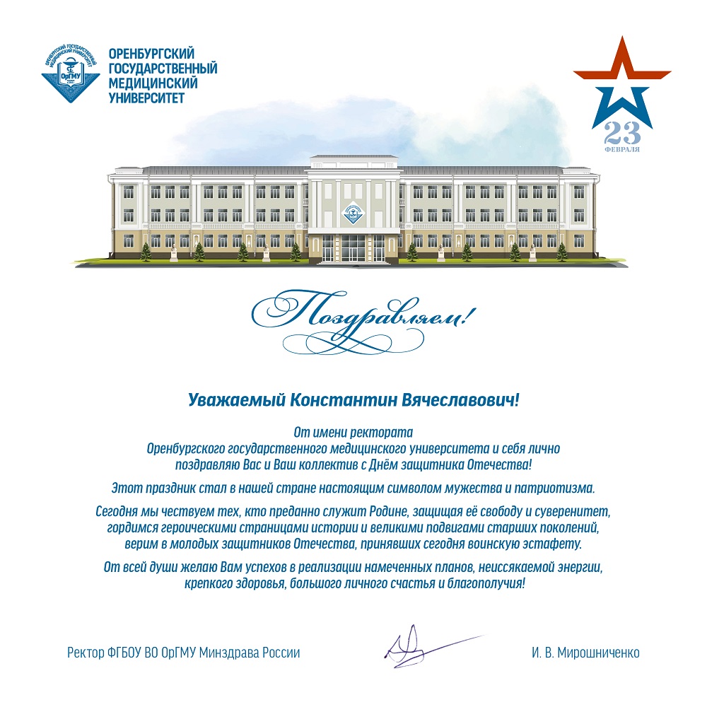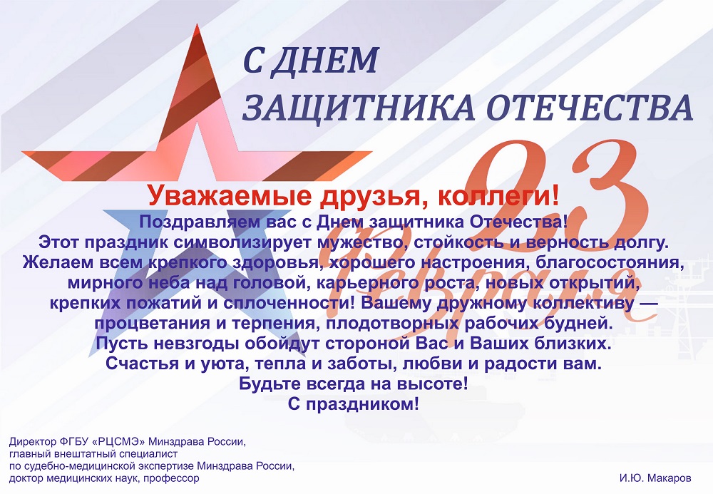 Поздравление Министра здравоохранения с Днем защитника Отечества