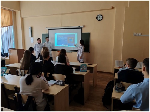 Сотрудники госпитальной и факультетской педиатрии с курсом пропедевтики детских болезней совместно со студентами 5 курса лечебного факультета по просьбе педагогического состава МБОУ гимназии №8 18.04.2026 г. провели профориентационную работу и беседу  на тему о вреде курения.