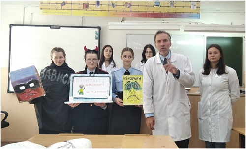 Под руководством старшего преподавателя кафедры гигиены Гончарова Д.А. студентка педиатрического факультета Артамохина Светлана и обучающиеся медико-фармацевтического колледжа Касумова Суджаят и Кахарина Александра встретились со школьниками и рассказали о славной истории и традициях Дальневосточного государственного медицинского университета, который в этом году отмечает свой 95-летний юбилей.